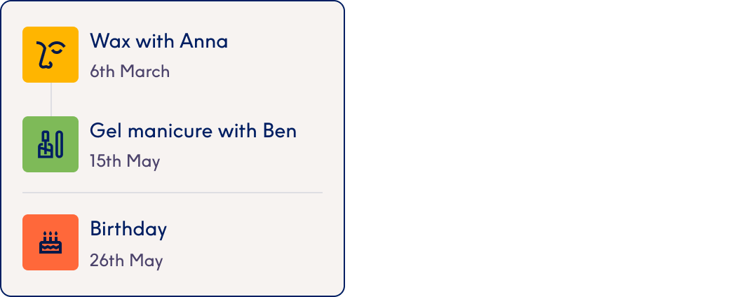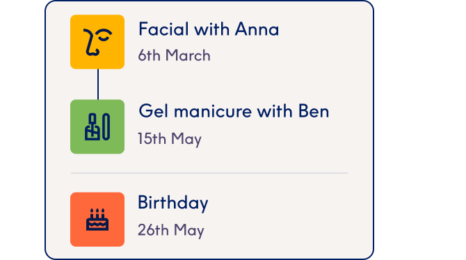 Track treatments, preferences and personalised notes in one place so every visit feels like you remembered everything without trying.